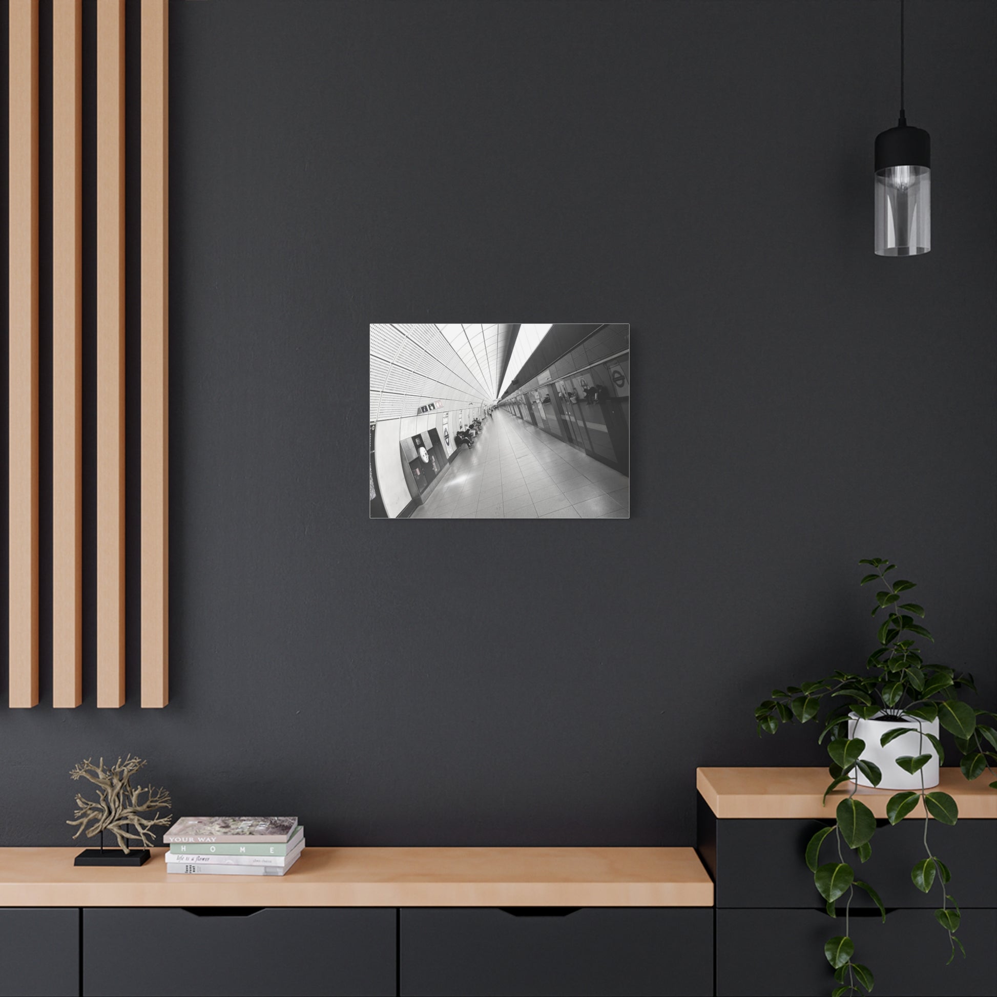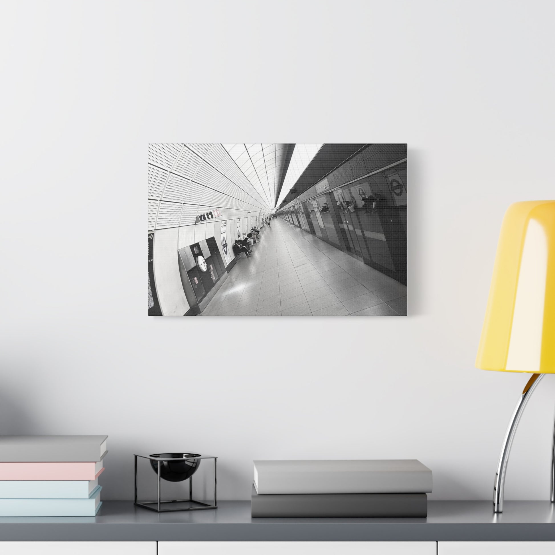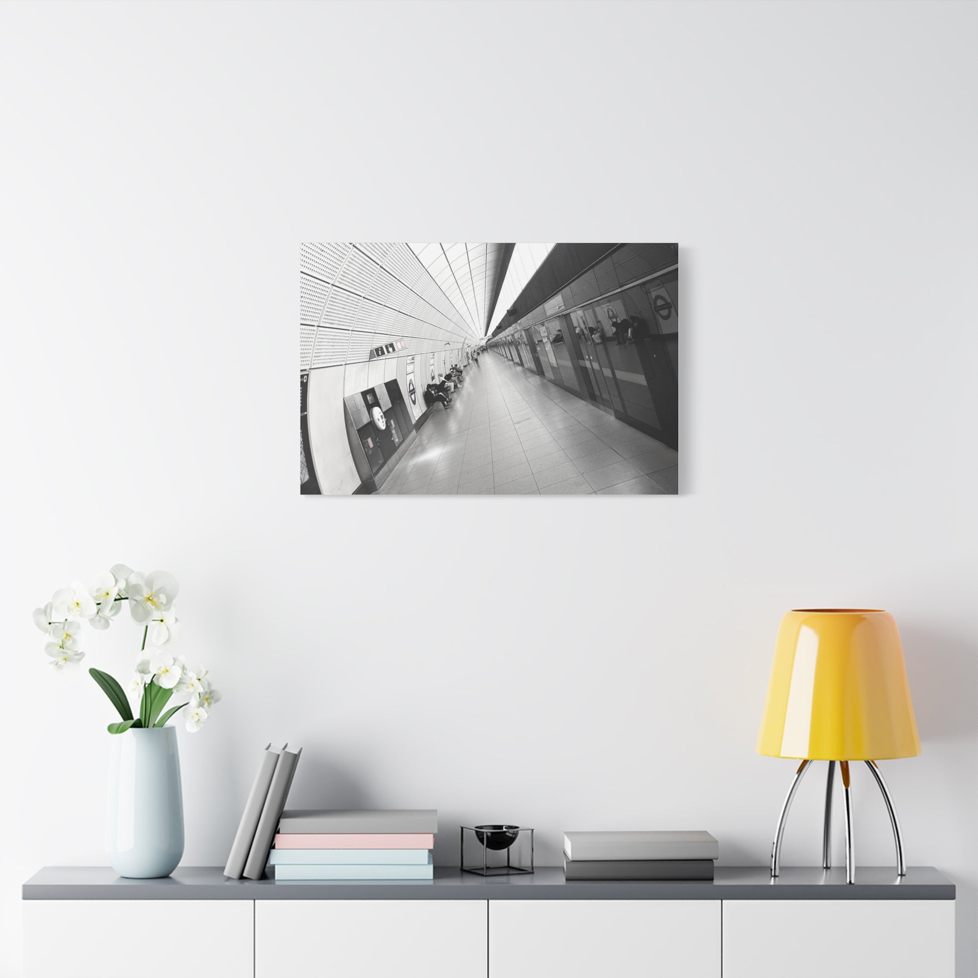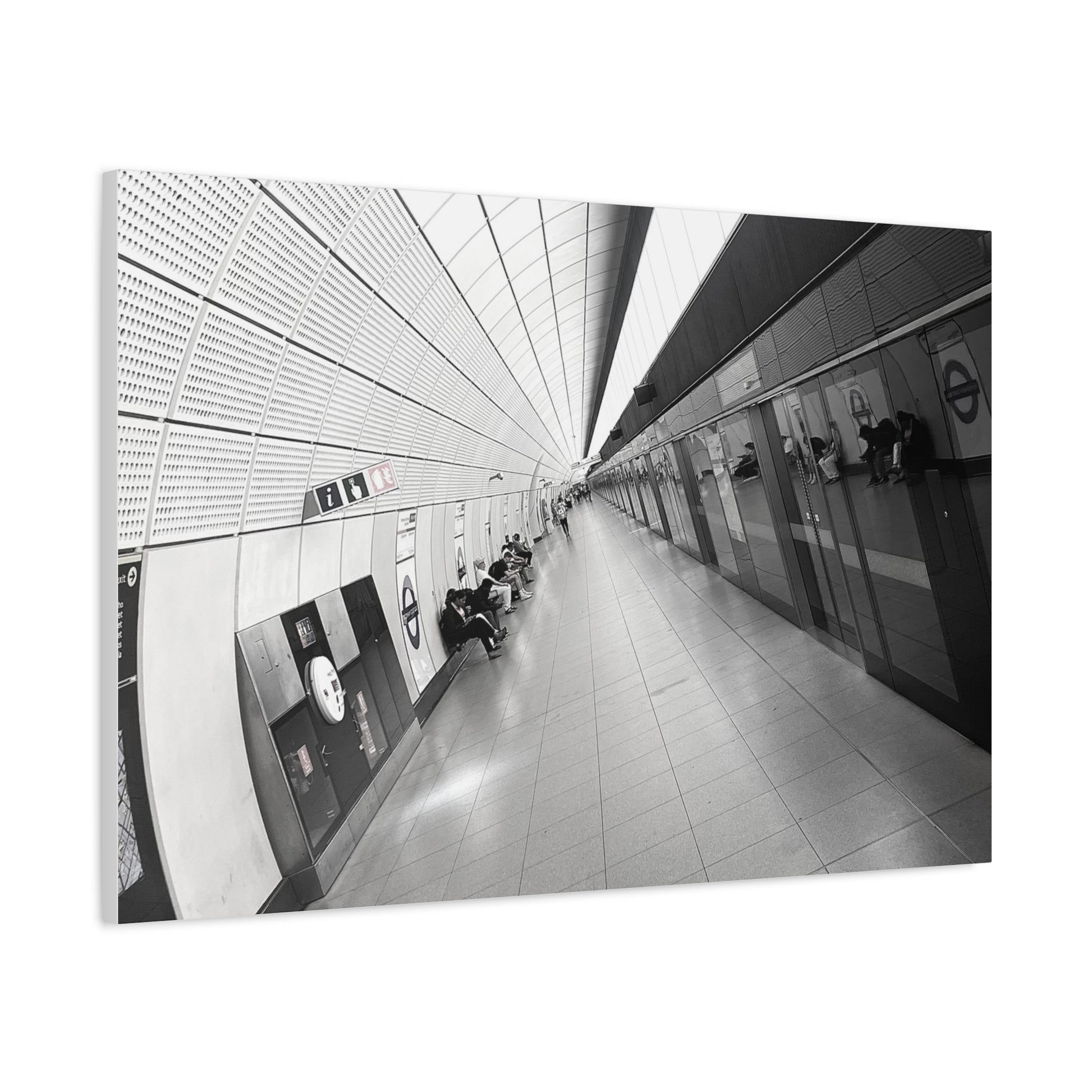 Captured on London’s Elizabeth Line, this black-and-white canvas showcases the system’s sleek architecture and futuristic symmetry. With its sweeping curves, vanishing lines, and polished urban energy, it’s a modern piece perfect for contemporary spaces and London lovers alike.